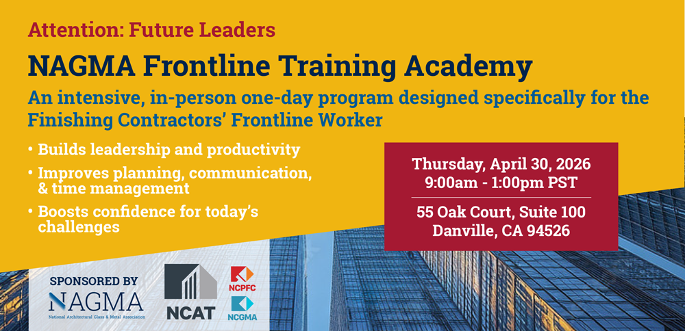 The NAGMA Frontline Training Academy is an intensive, in-person one-day program designed for Finishing Contractors' frontline workers who are stepping into, or ready to step into, leadership roles in the field.